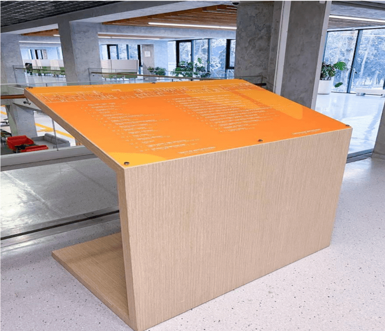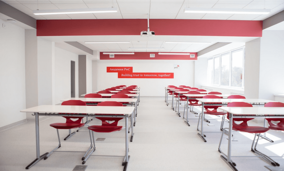Стулья в аудитории изготовлены в Германии и были специально разработаны в мастерской Жана Нувеля, влиятельного архитектора и дизайнера. Эти стулья позволяют сидеть до 4 часов без перерыва, обеспечивая комфорт и поддержку поясницы.